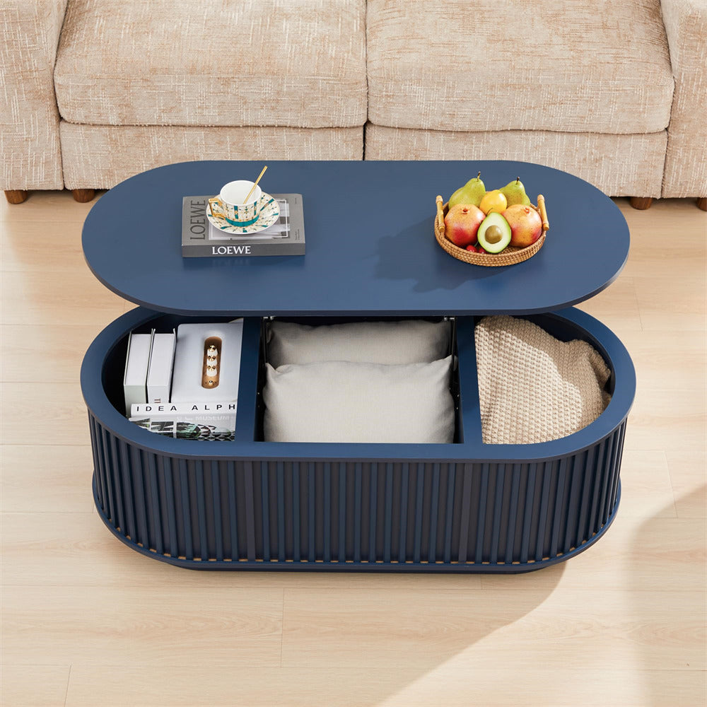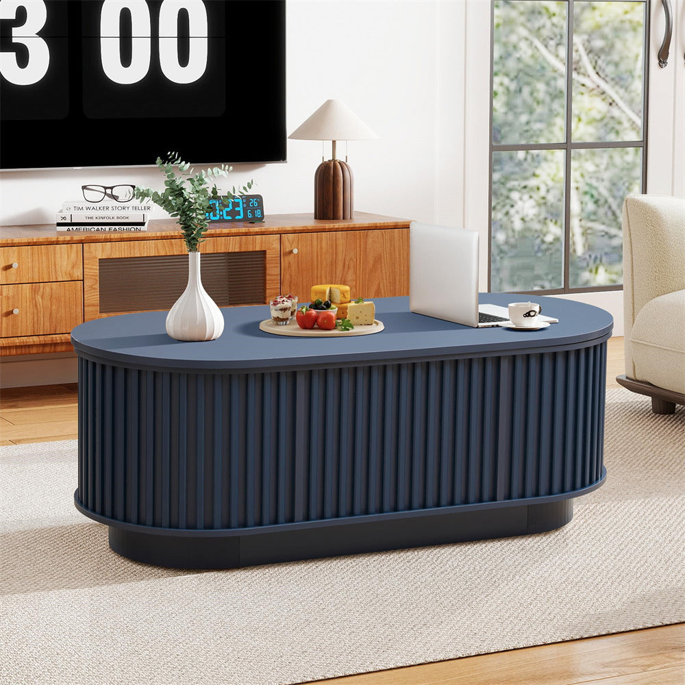 Mid-Century Modern Design: With its vertical grooved panels and curved oval shape,this fluted coffee table captures the timeless charm of mid century modern coffee tables. The rich walnut tone blends seamlessly with a range of interior styles, creating a warm yet sophisticated focal point in your living room