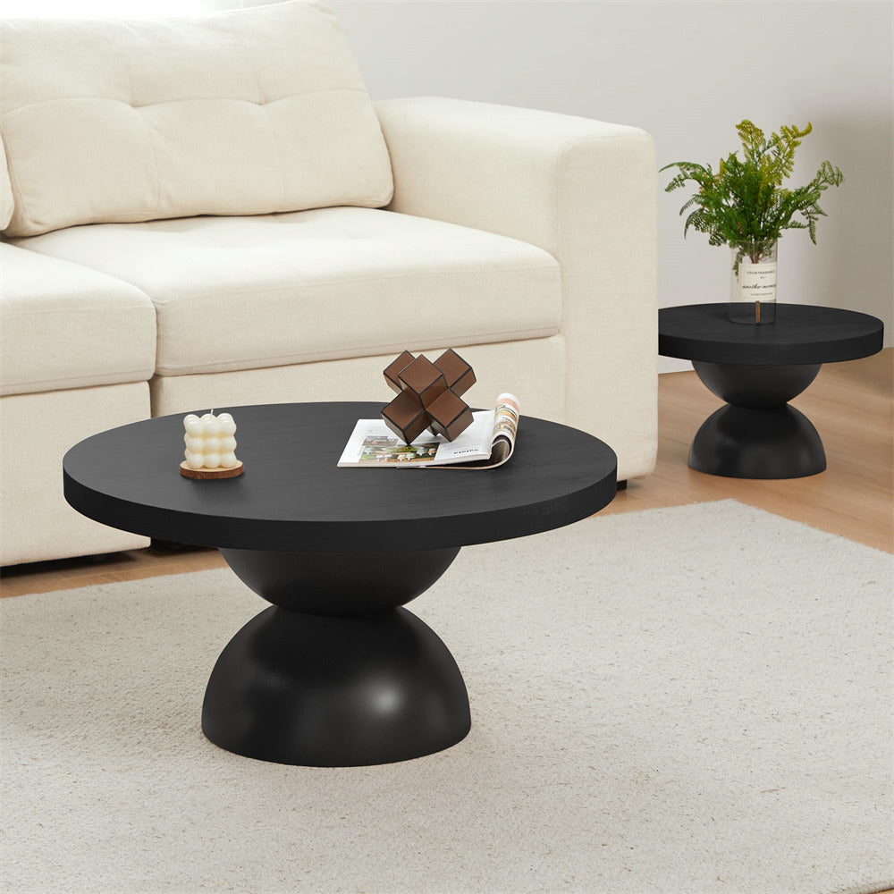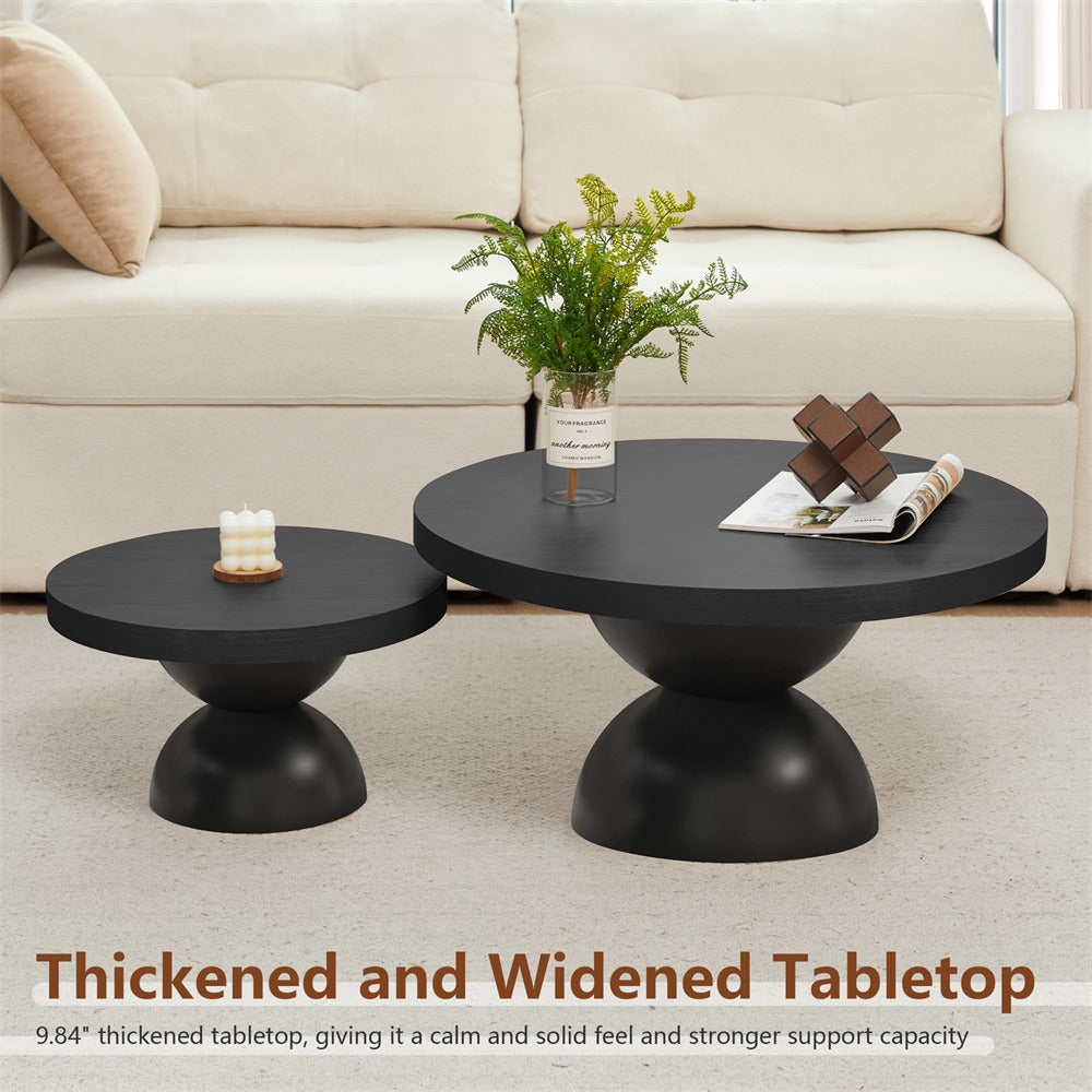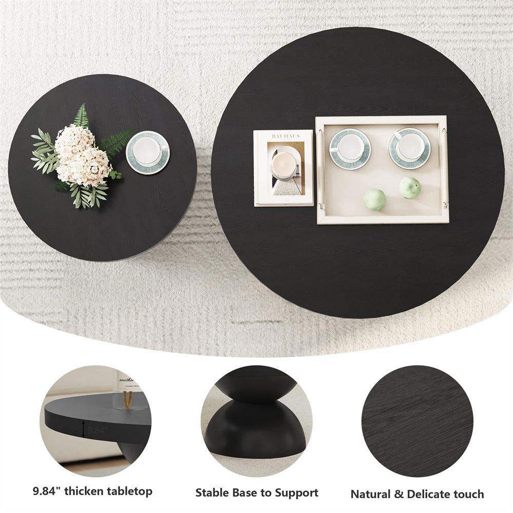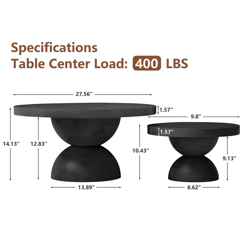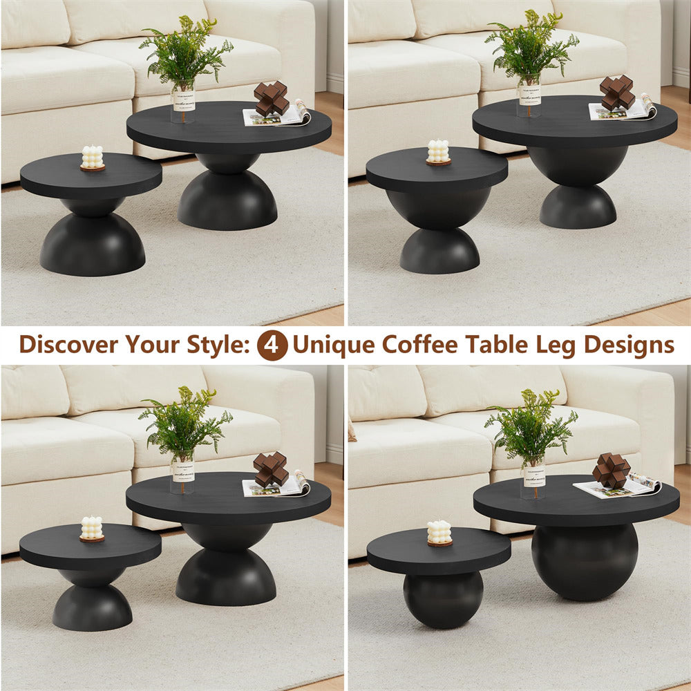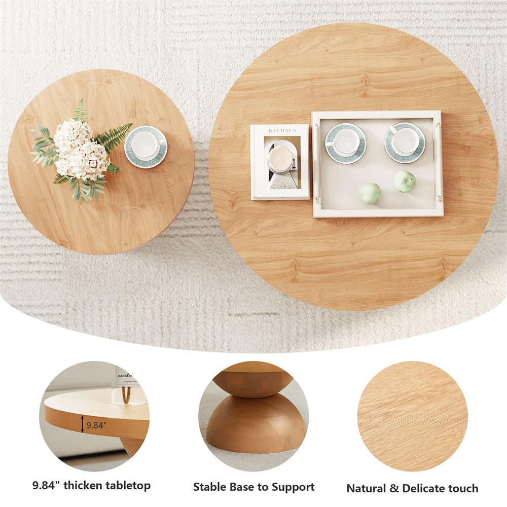 Versatile All-in-One Table Set:This solid wood round nesting table set of 2 serves as a coffee table, end table, or side table—ideal for small living rooms, bedrooms, apartments, or offices. Its minimalist circle top and sculptural semi-circular legs add a stylish, modern accent.