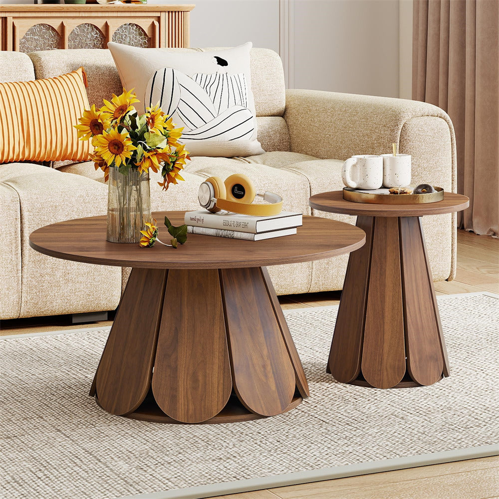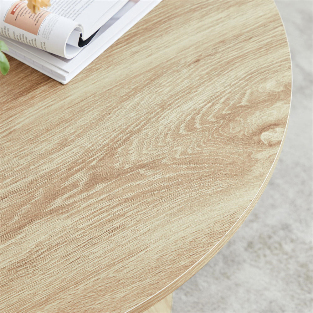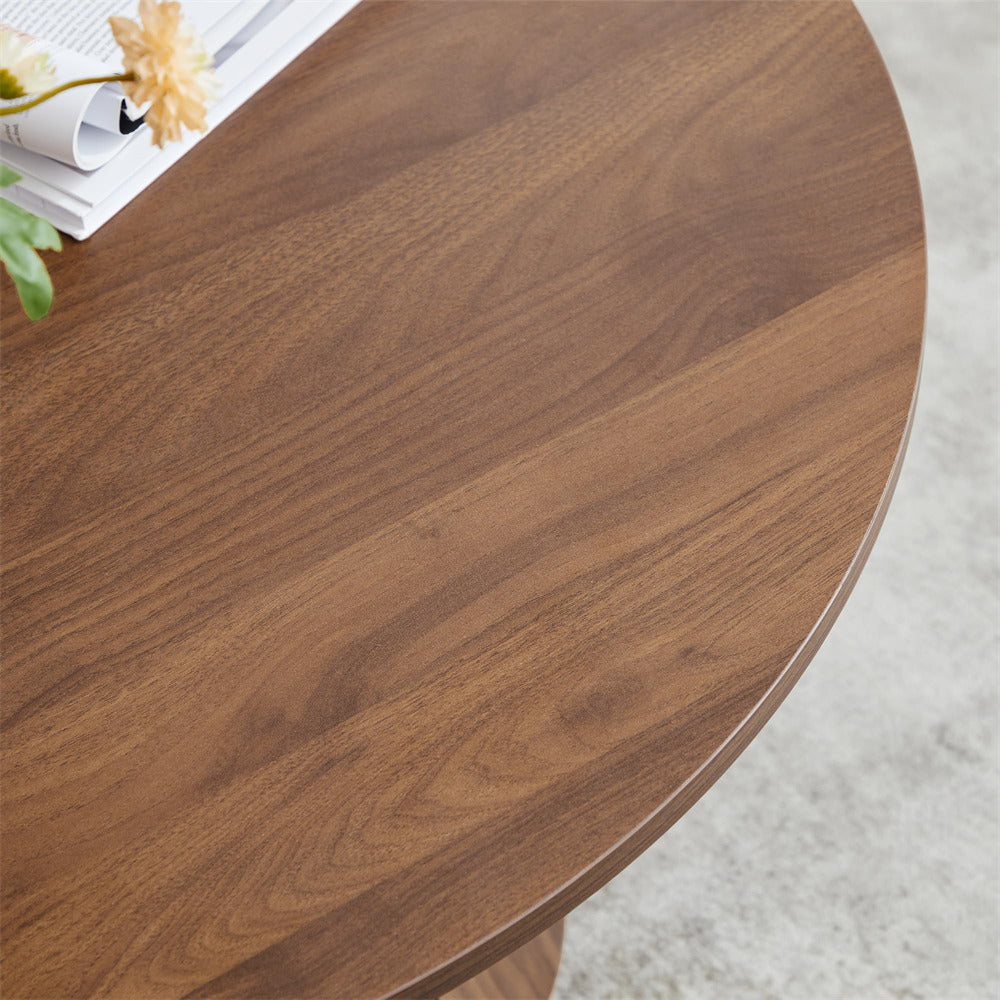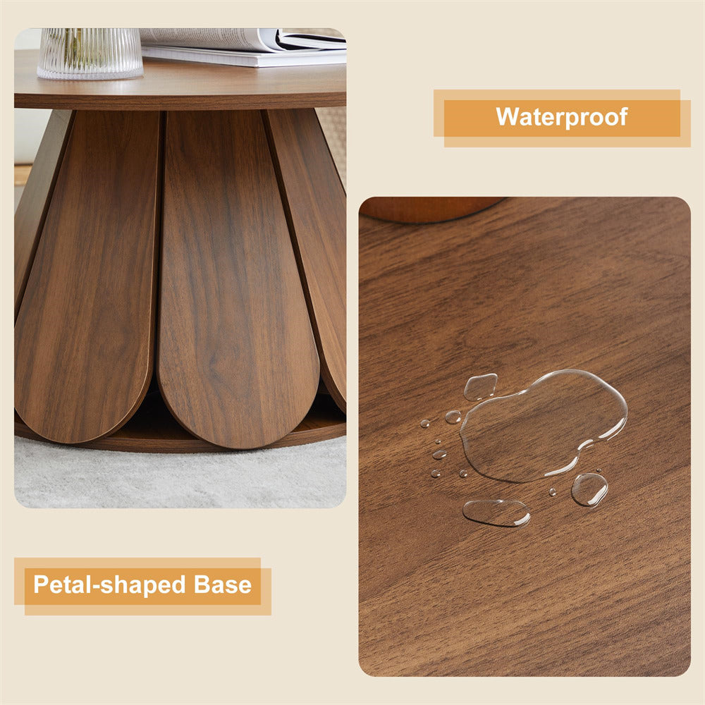 Seamlessly Adapts to Any Decor: Available in two versatile color options—natural, walnut, this round coffee table effortlessly blends into various home decor styles, adapting seamlessly to any modern living spaces. It combines good looks with practicality, making it a flexible choice for any living space.