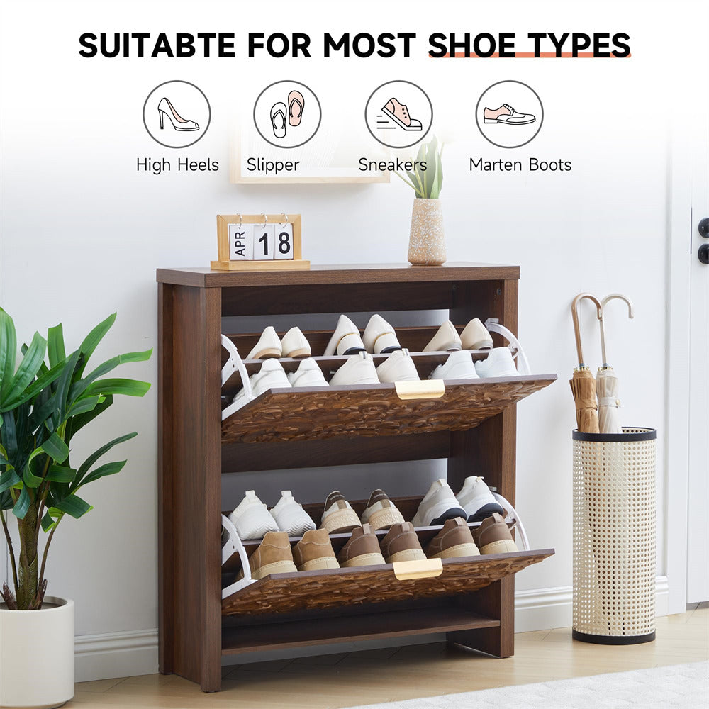 Hidden Storage with 2 Flip-Up Drawers: Features two easy-open flip drawers that keep shoes neatly hidden and dust-free. The 2-tier shoe storage cabinet design helps maintain a tidy entryway or foyer.