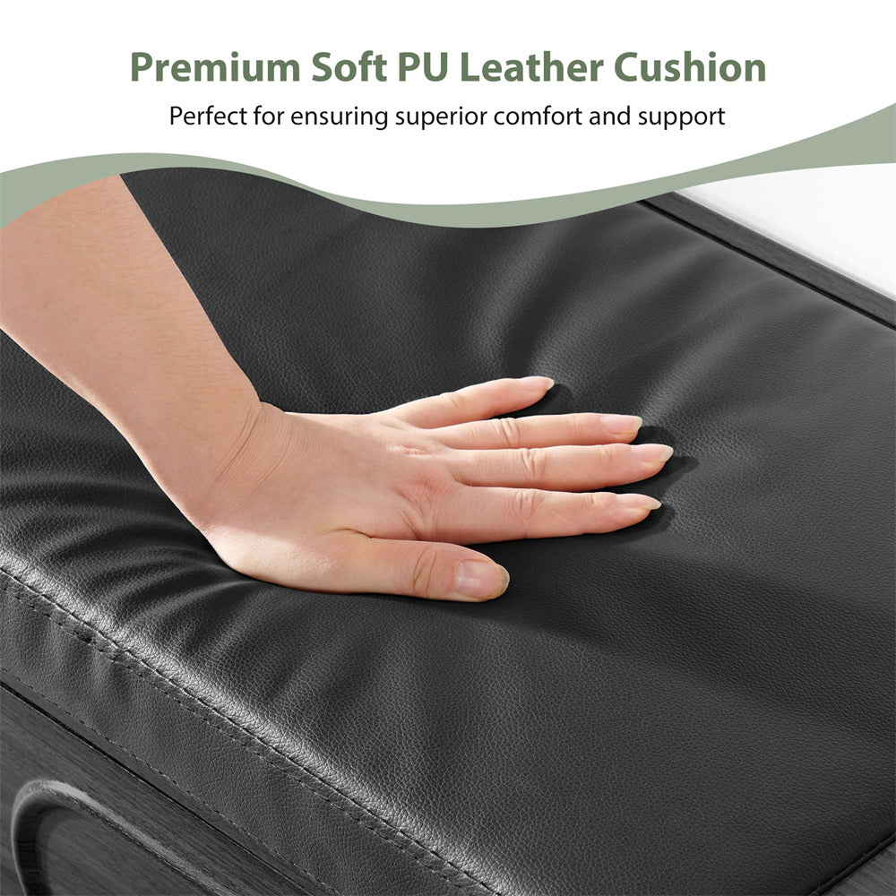 Comfy Padded Cushion: This shoe bench features a 2-inch thick padded cushion for ergonomic support, enabling effortless shoe changes while seated comfortably. Its waterproof PU leather surface withstands daily wear and cleans easily, while the hidden back zipper allows quick cushion removal for deep cleaning, balancing practicality and comfort design.