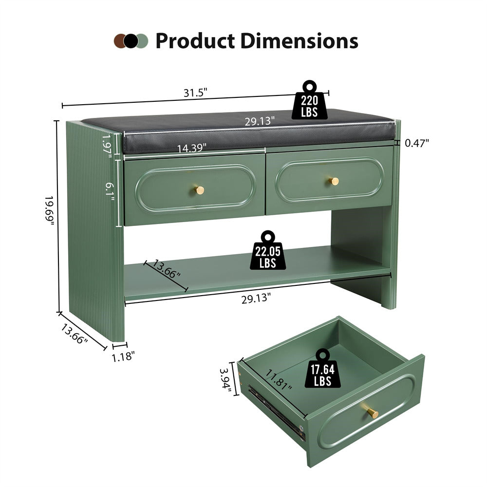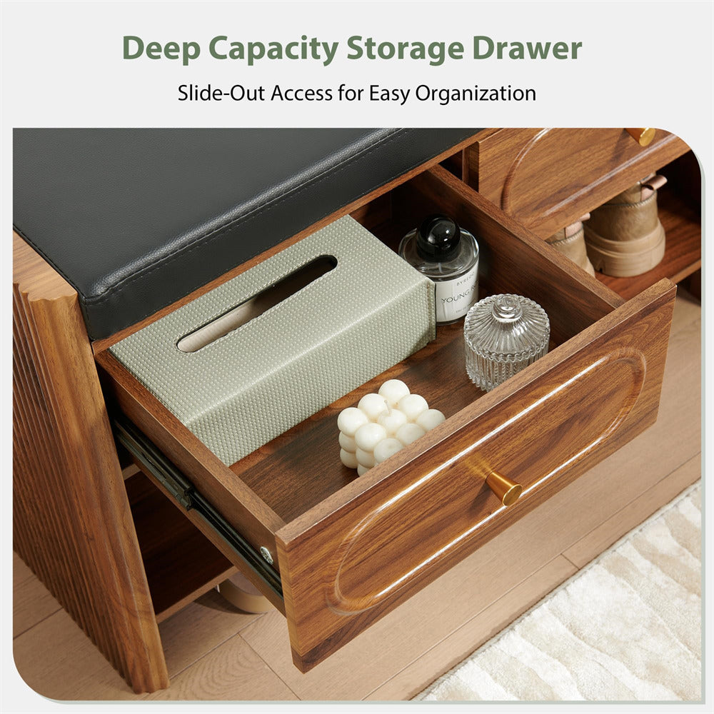 Modern Storage Bench: Boasting a distinctive fluted wood design with three versatile color options—walnut, green, and black, this modern bench with shoe storage elegantly enhances any room's aesthetic. Its mid-century inspired look and refined texture blend seamlessly into contemporary spaces, offering both stylish storage and visual appeal for living areas.