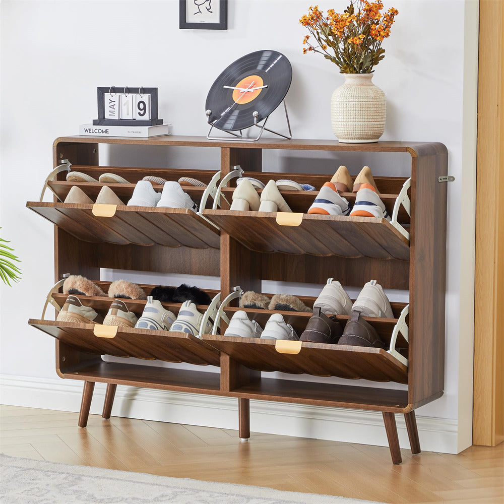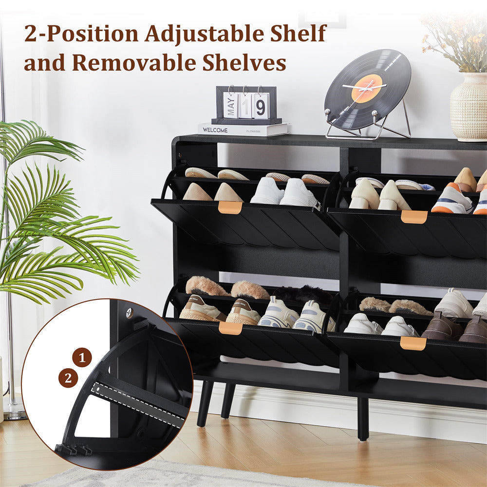 Large Capacity Shoe Cabinet: Say goodbye to clutter and hello to ample storage! Each flip drawer provides two layers of storage space, accommodating various sizes and styles of shoes for you and your family. The spacious desktop allows for easy access to everyday items like wallets, keys, and plants.