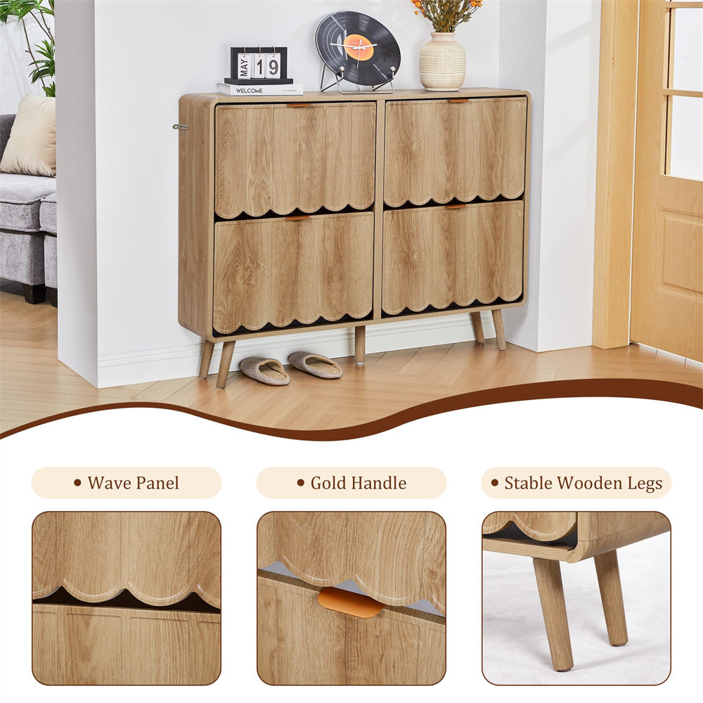 Modern Shoe Cabinet: Elevate your living space with our uniquely designed Modern Shoe Cabinet. Its wave-shaped drawer surface adds a touch of distinction, setting it apart from traditional shoe cabinets. Perfect for any space - hallway, entryway, living room, or porch.