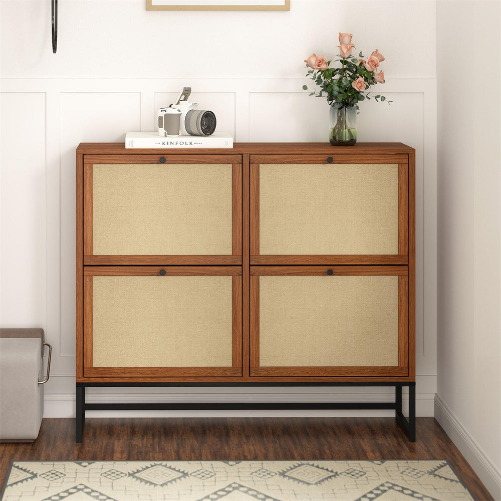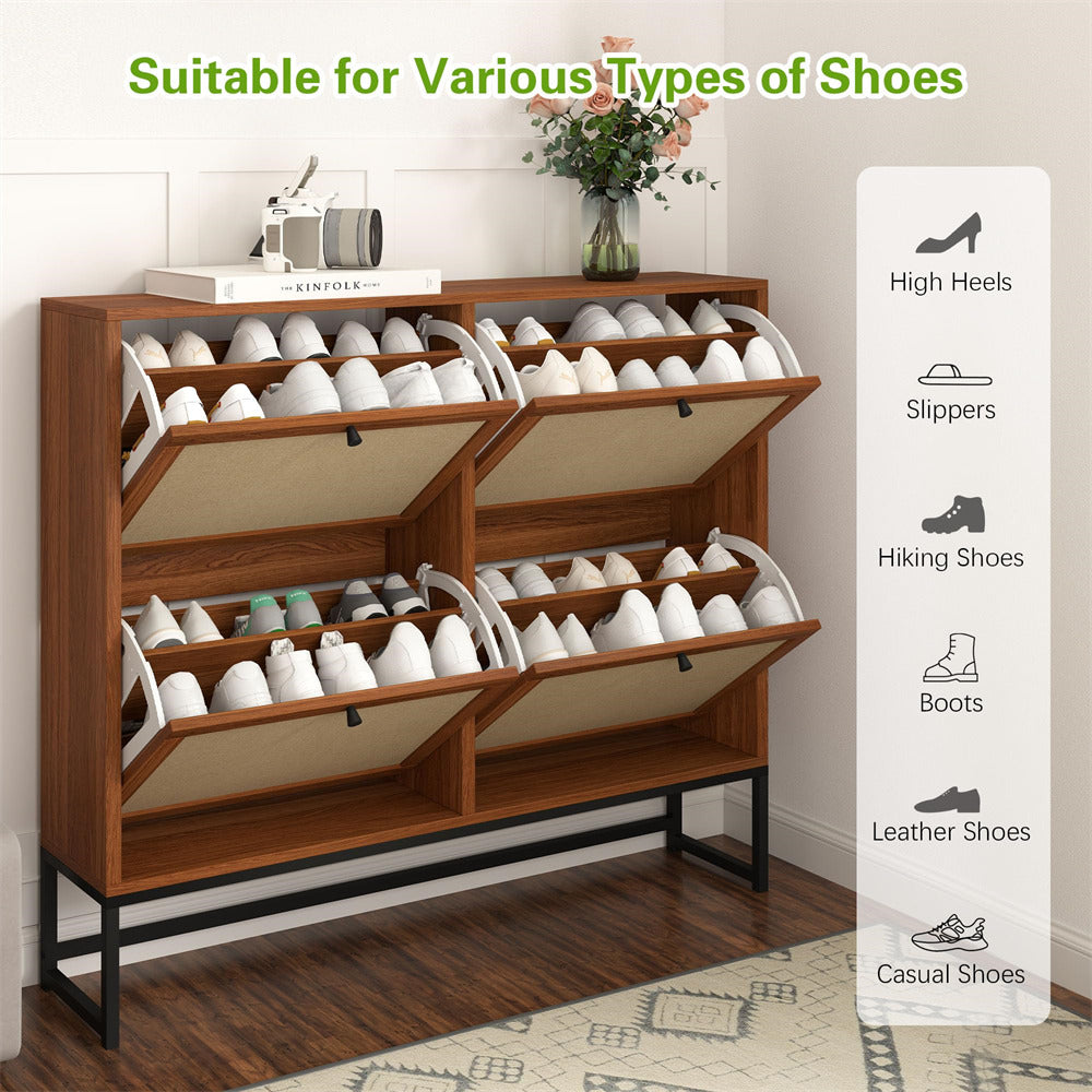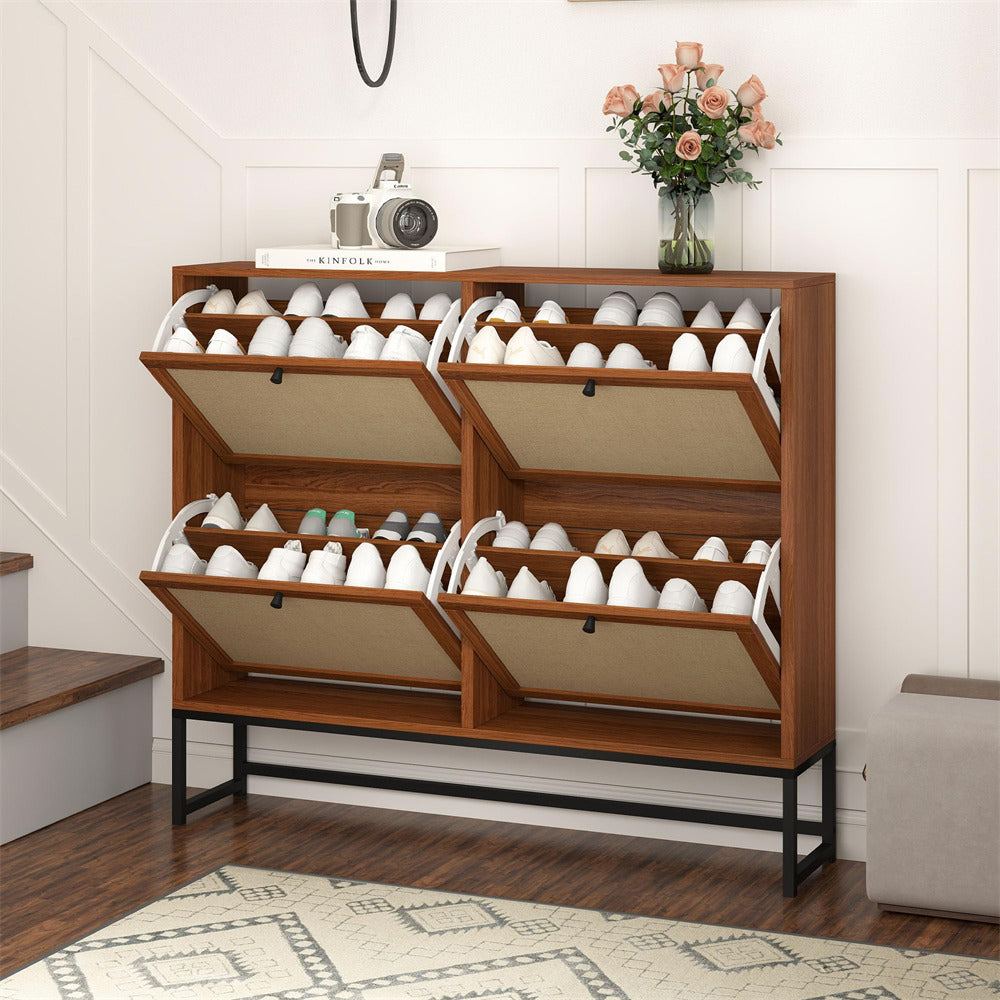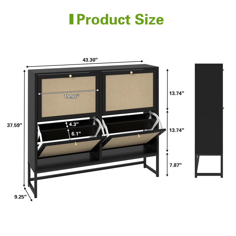 Product Advantage: The drawer panel of the thin shoe cabinet is made of natural Flax through special craftsmanship, which has strong breathability. The space saving 4 2-tier flip drawer design makes your entrance more tidy and offers ample storage space. The metal base ensures greater durability and is equipped with an anti tipping device, making it safer and more reliable to use.